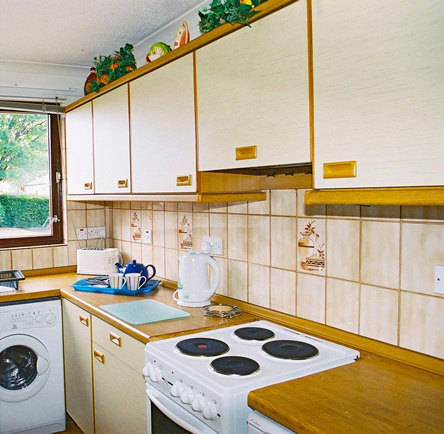 The kitchen is off the living room - again facing to the front and has lots of appliances.